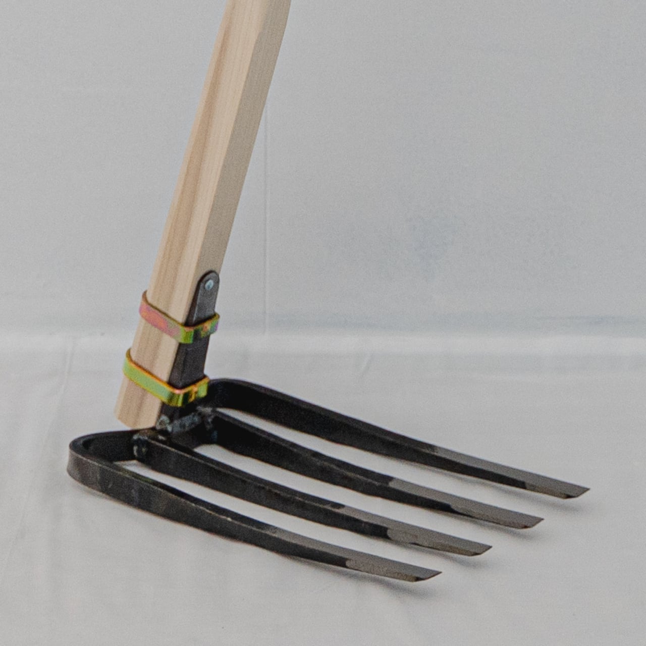 関東地方で広く使われている備中鍬。田畑の掘り起こしや根菜の収穫などに使う鍬です。